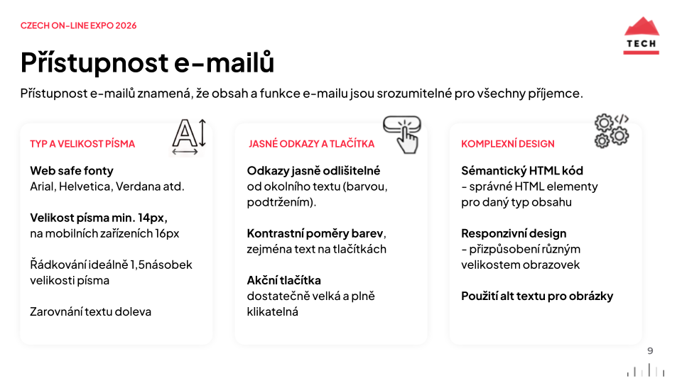 Obr: Přístupnost e-mailů znamená, že obsah a funkce e-mailu jsou srozumitelné pro všechny příjemce.