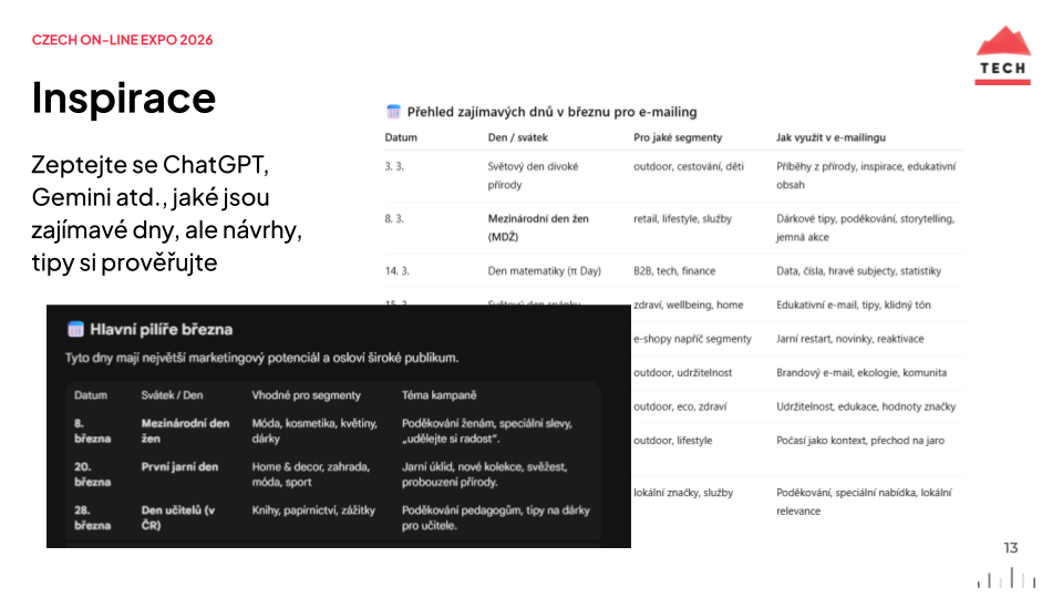 Obr: Inspirace: Zeptejte se ChatGPT, Gemini atd., jaké jsou zajímavé dny pro e-mailing