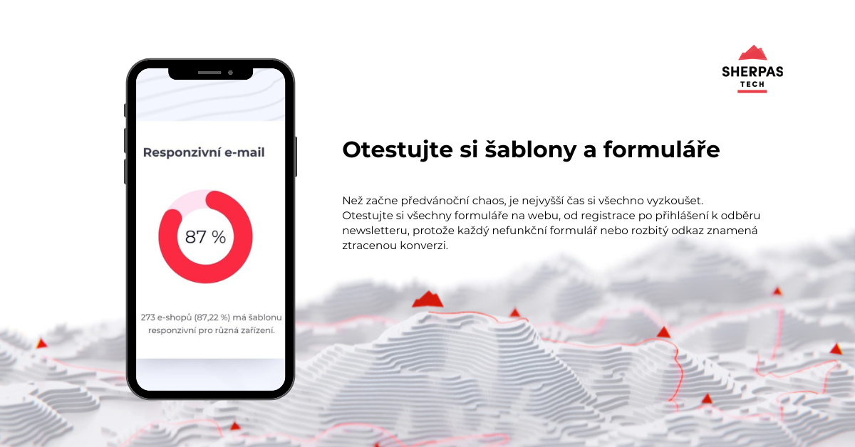 Než začne předvánoční chaos, je nejvyšší čas si všechno vyzkoušet. Otestujte si všechny formuláře na webu, od registrace po přihlášení k odběru newsletteru, protože každý nefunkční formulář nebo rozbitý odkaz znamená ztracenou konverzi.